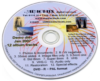 Based in the East Midlands, UK since 2005, MEMORIES digital services (Mds) can create DVD’s, or Audio CD's, or digital format onto USB memory stick or your external hard drive from your old :-